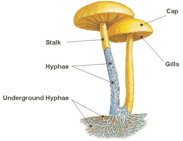 Morphologically, mushrooms have a cap (pileus), a stem (stipe), underground hyphae, hyphae, stalk and gill (lamellae) (Figure 1). The lamellae (singular: lamella) produce microscopic spores that help the fungus spread across the ground or its occupant surface. Spore formation by mushrooms is a critical parameter for the propagation of this macro-organism especially in new habitats. Most mushrooms are Basidiomycetes; and they are known to produce spore which help in their propagation in the environment. Mushrooms that are basidiomycetes produce basidiospores โ which aid in the reproduction of the organism in a new environment or substrate.