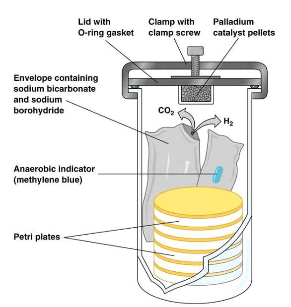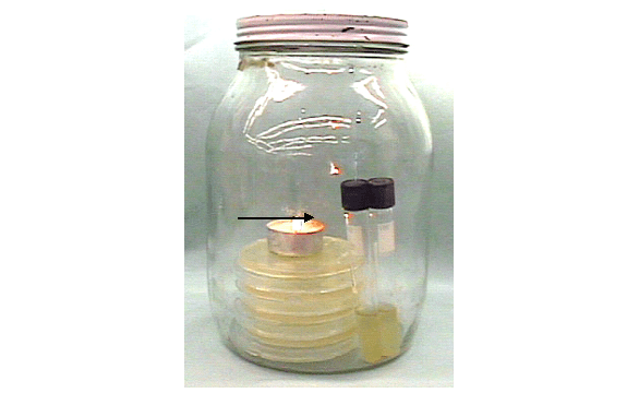 As the candle burns, the concentration of oxygen in the jar is reduced until the candle light goes out to provide sufficient CO2 necessary for the organismโs growth. There also exists an anaerobic chamber for the cultivation of anaerobic bacteria in the microbiology laboratory (Figure 4).